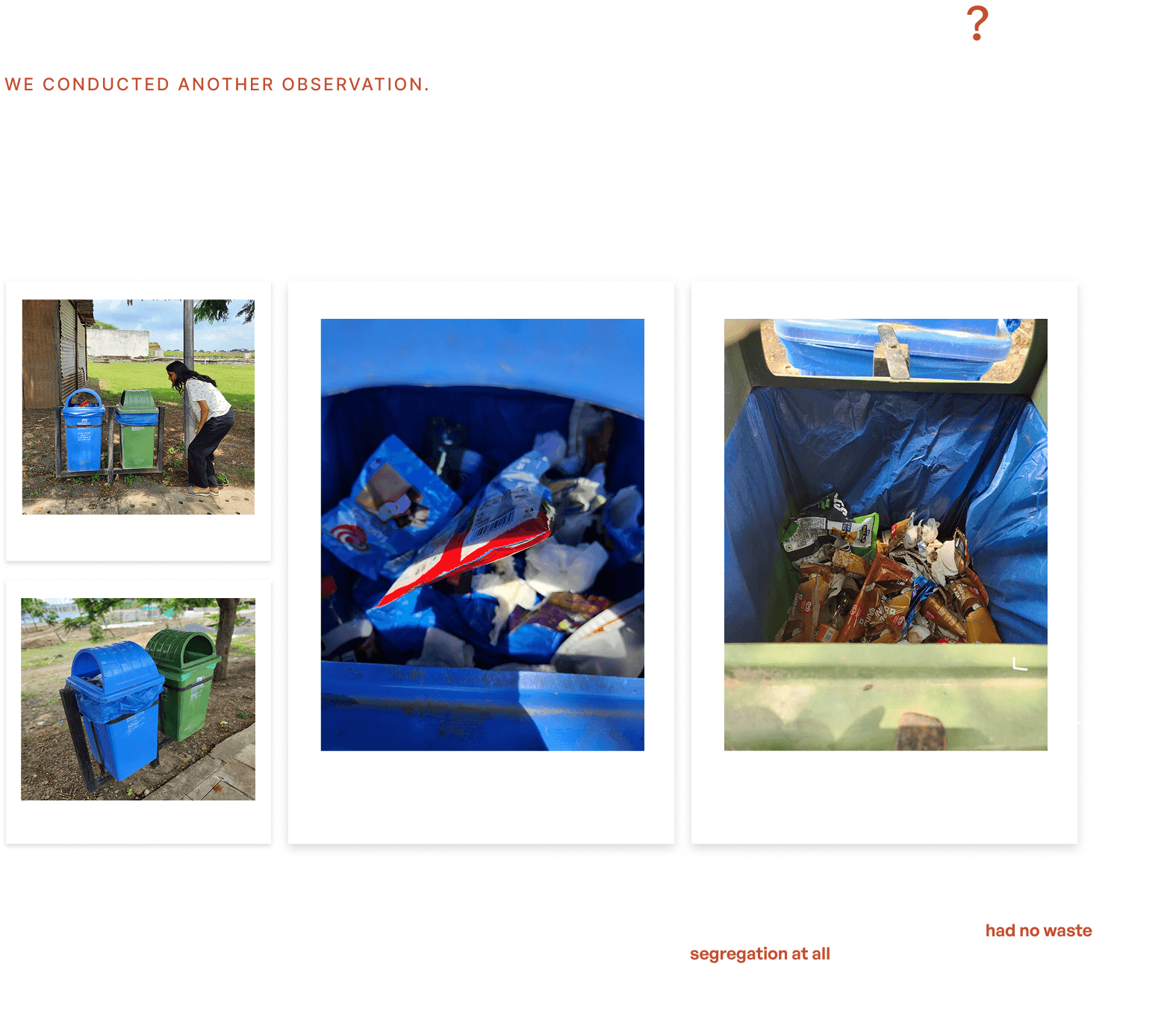 "Mindful Waste" explores these psychological aspects, focusing on the attitudes and beliefs that shape waste management practices. By understanding these barriers, our project aims to inform strategies that promote more sustainable and responsible behaviors.